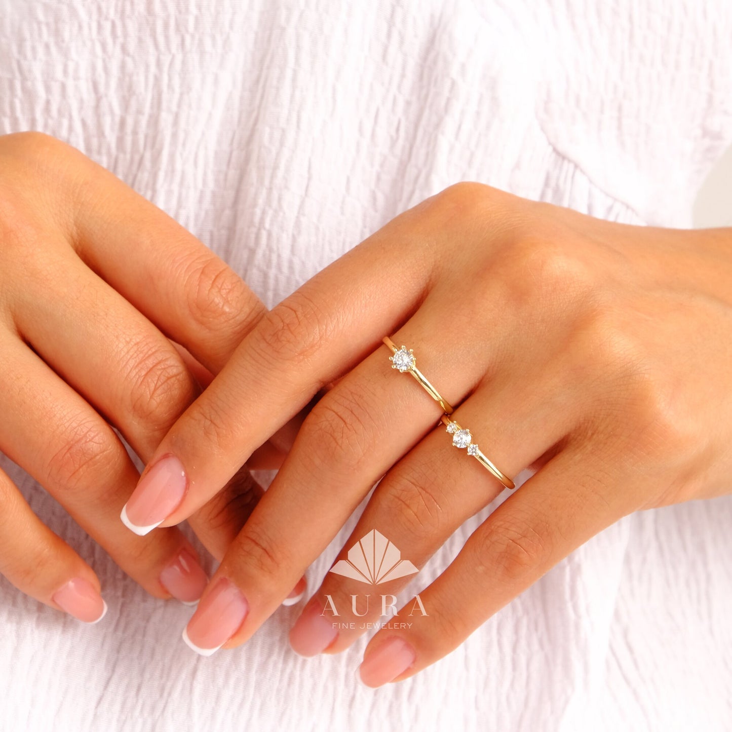 14K Gold CZ Diamond Solitaire Ring, Solitaire Diamond Ring, Single Stone Promise Ring, Simple Diamond Ring, Thin gold Band Ring, Stacking Ring